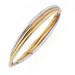 9ct White, Rose and Yellow Gold ‘Russian’ Three-Tube Bangle.