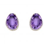 9ct Yellow Gold Amethyst and Diamond Earrings.