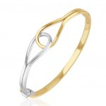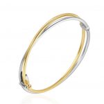 9ct Two Tone Row Cross Over Hinged Bangle.
