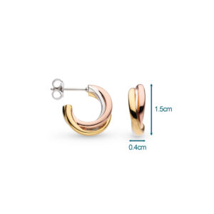 The perfect marriage of classic and contemporary, the trio of bevelled silver strands form a semi-hoop design that perfectly hugs the ear. Detailed in the warm tones of 18ct gold and rose gold plate, the mix of colour create a superbly versatile everyday pair of hoop earrings to mix into your personal look and style.