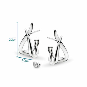 Taking the hoop look to the next level, these entwining sterling silver stud hoop earrings are tactile in their twisting form. Curvaceous, feminine, yet edgy, these earrings are undoubtedly a head-turning pair. Small enough to be tastefully demure, but distinctive enough to elevate your everyday style. In addition to the highly polished rhodium-plated finish, the butterfly stud fitting allows for a classic, secure fit making this pair your newest go-to piece.
