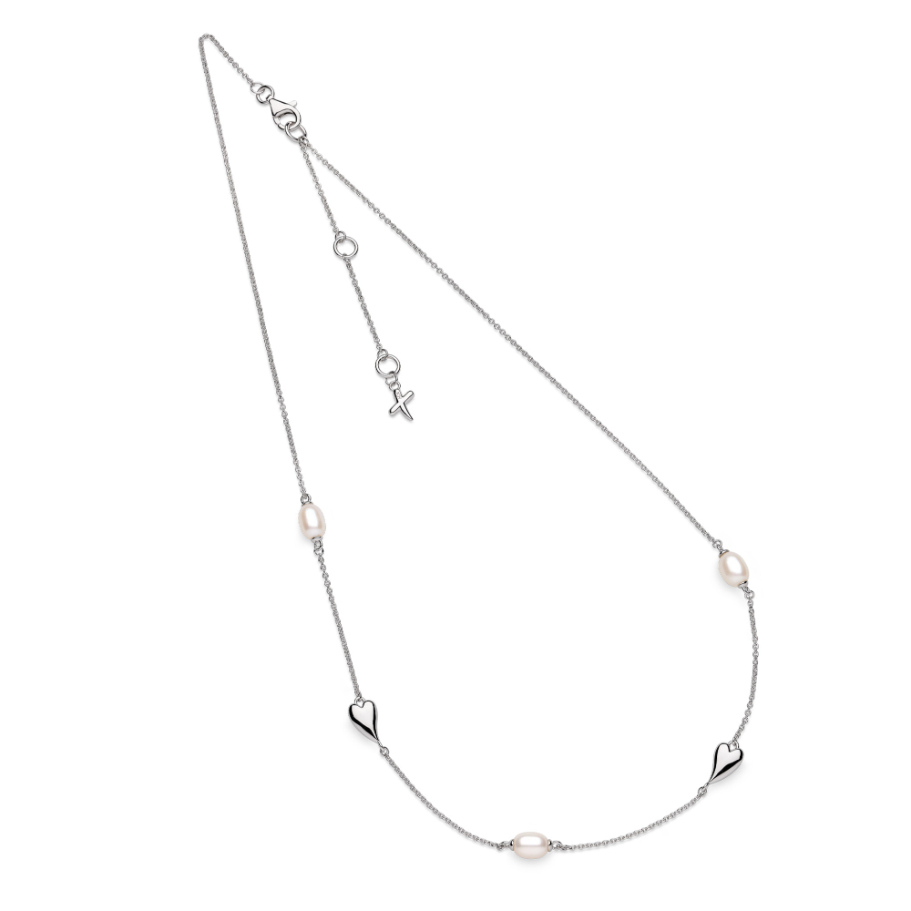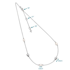 Refined and romantic, the new Desire Kiss Pearl Station Necklace features a graceful arrangement of Freshwater Pearls and signature Sterling Silver hearts along a fine chain. Designed with versatility in mind, the necklace can be worn at 16″, 17″, or 18″ lengths—making it the perfect finishing touch for any neckline.